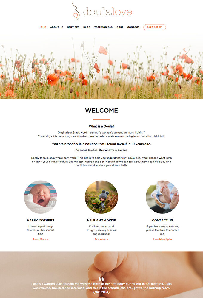 A doula helps during childbirth. Intervision created a delicate, simple website to reflect her offering, outline her services and incorporated a blog with Social Share.