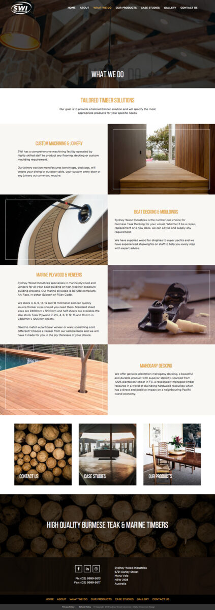 Sydney Wood Industries is a long time established wood company, specialising in Burmese teak. Intervision redesigned their website to match their branding and to showcase their extensive offering, bringing their site up to date with Responsive Design, blog with social share, social media incorporated and an easy to edit website.