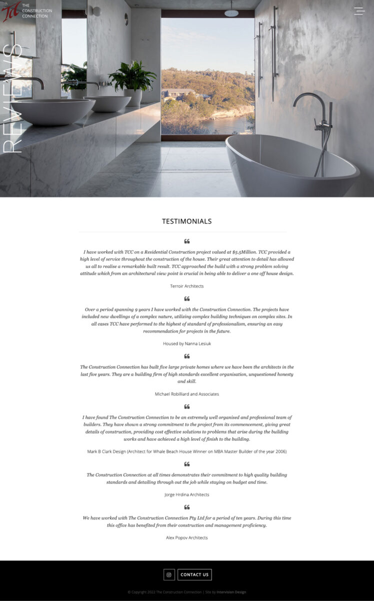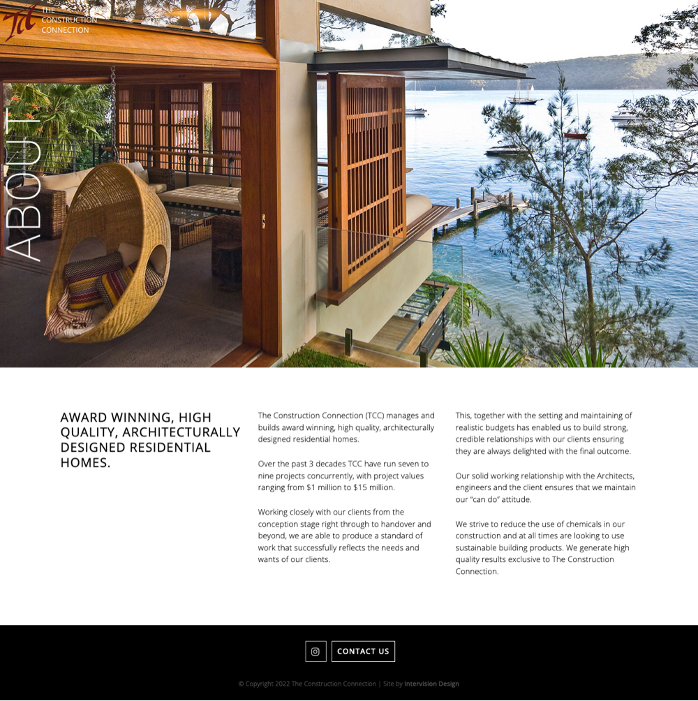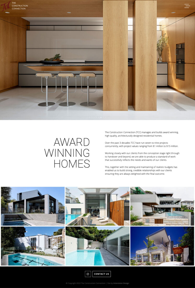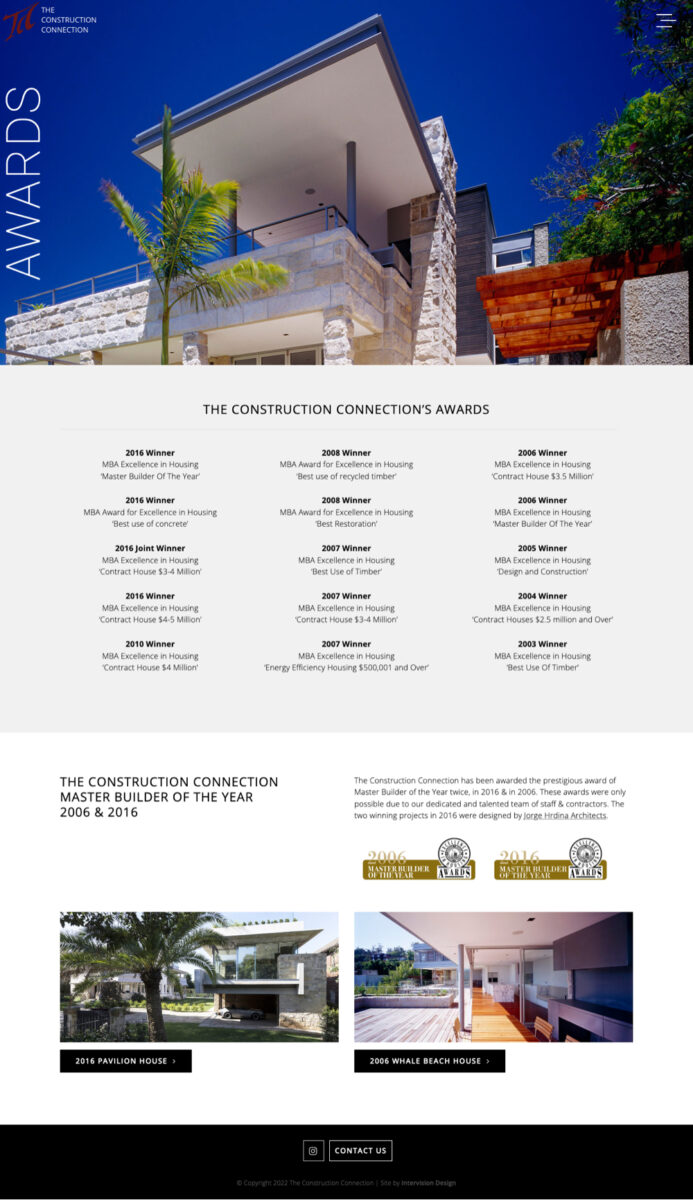 The Construction Connection are an established building company, based in Avalon. Intervision redesigned their website to showcase their extensive project portfolio, as well promoting their prestigious MBA Building awards – all incorporated into an easy to edit, Responsive website.
